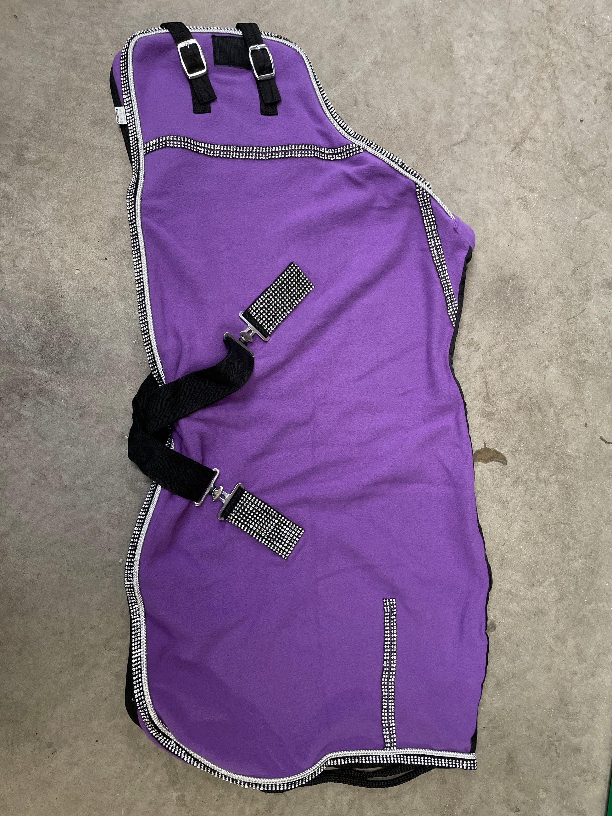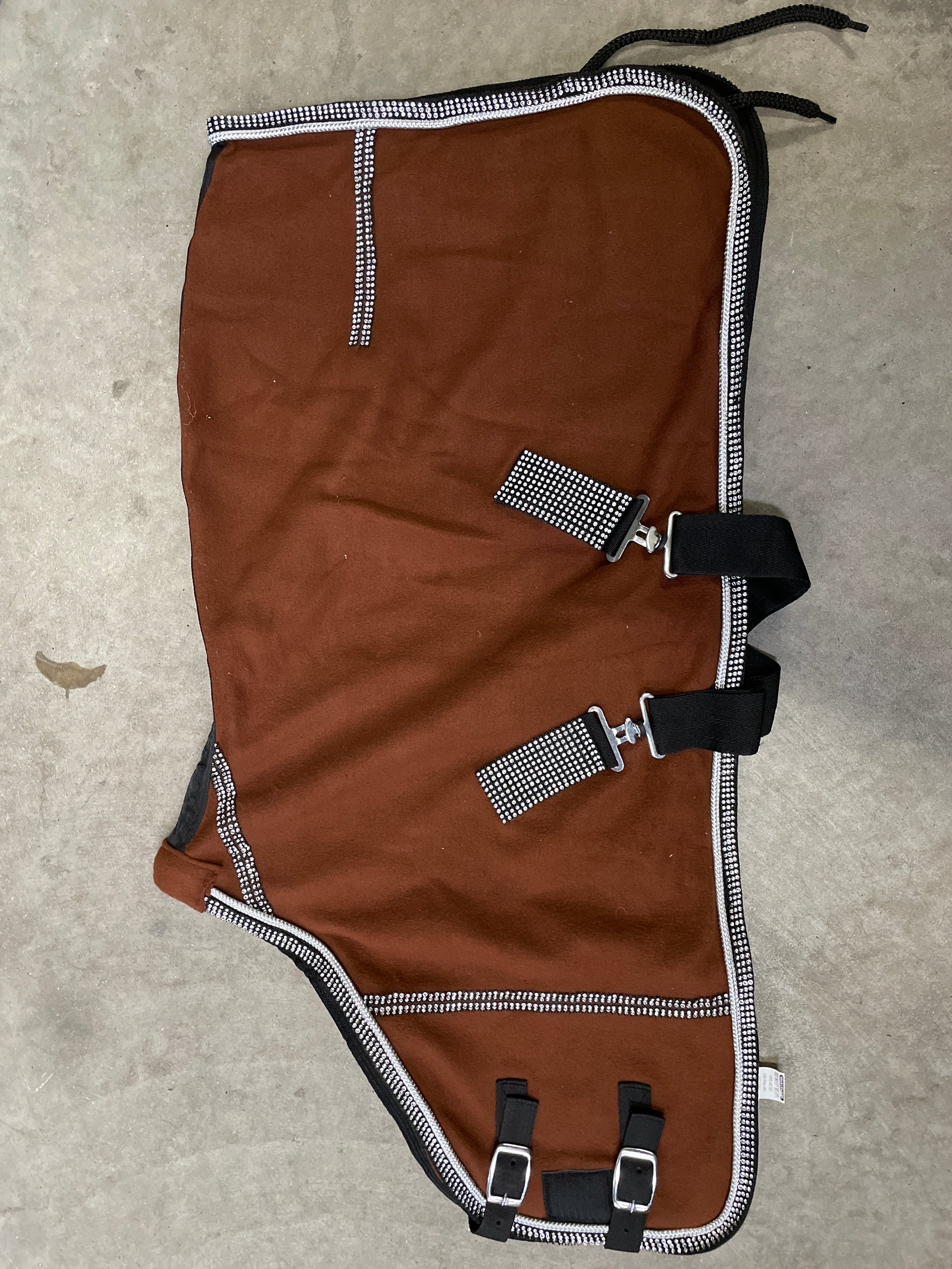 Flotte fleecedækkener med bling, flotte til når man skal i byen. Dækkenerne er lavet til miniatureheste.