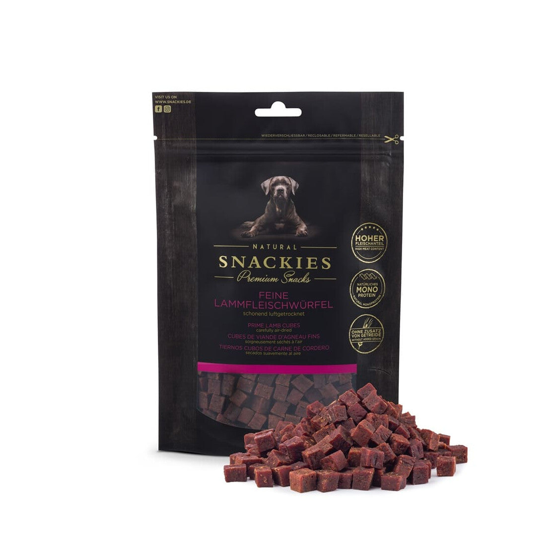 Vores terninger af fint lam er hypoallergene, super velsmagende, nemme at fordøje og giver mange vigtige næringsstoffer. Derfor anbefales de som en ændring på din firbenede vens menu. På grund af de mineraler og vitaminer, det indeholder, har lam en positiv effekt på forskellige kropsfunktioner, såsom stofskiftet, nervesystemet eller immunsystemet.