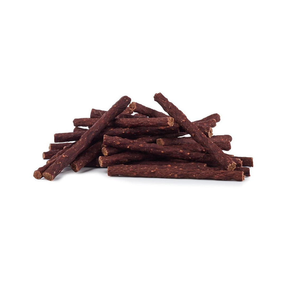 - Stænger lavet af solidt røget oksekød i en praktisk XXL-pose