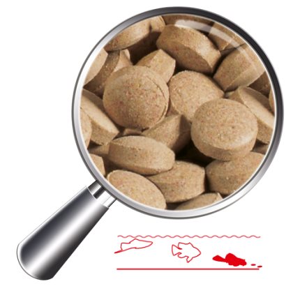 Det höga innehållet av örter gör detta foder väldigt populärt och perfekt för fiskar som söker näring i botten